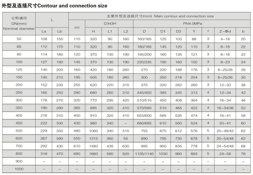 ④ 适用介质、工作温度及压力范围。